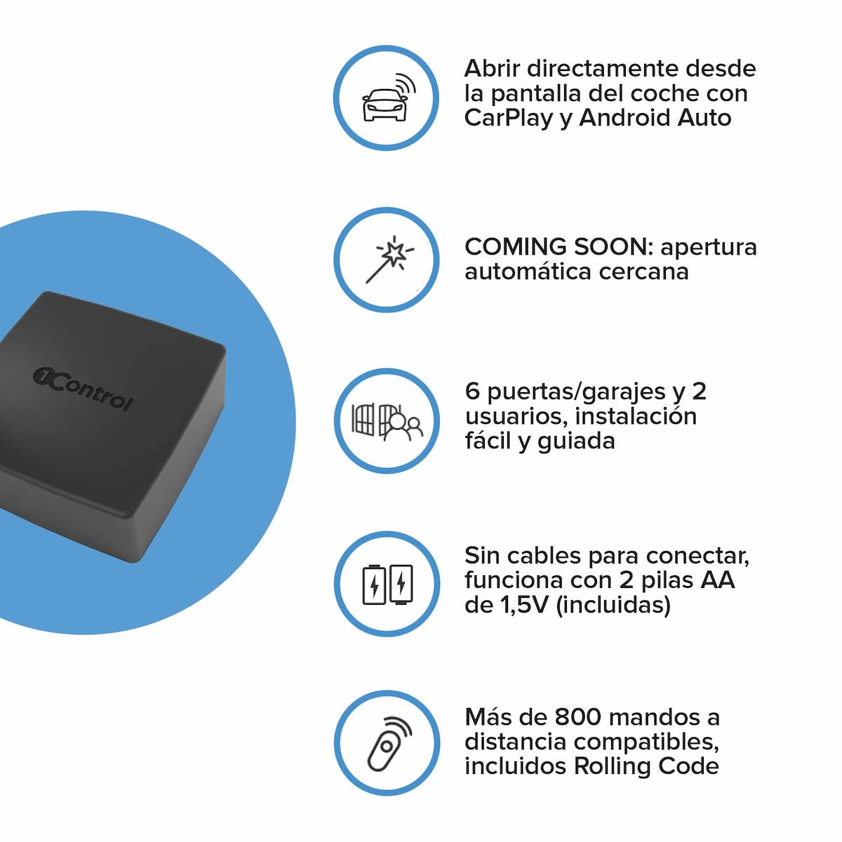 SOLO AUTO es el único abrepuertas del mundo que te permite abrir directamente desde la pantalla de tu coche con Apple CarPlay y Android Auto, sin necesidad de conectar ningún cable, simplemente copiando tu mando original con la aplicación.