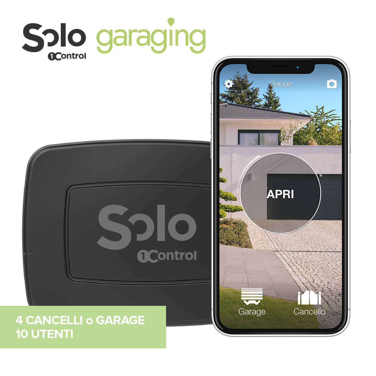 SOLO - Garaging può azionare fino a 4 cancelli o garage. 4 radiocomandi diversi o 4 tasti di un unico radiocomando.